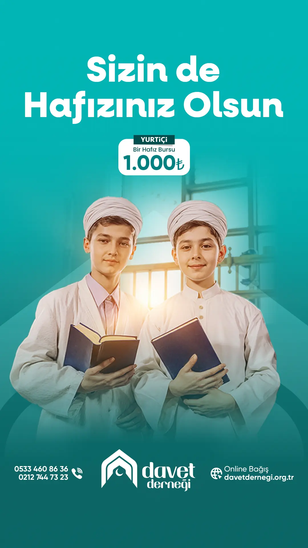 Evlatlarımızın İslâmî bilgi düzeyinin artırılması, fazilet sahibi ve güzel ahlaklı bir neslin yetişmesi için; dini gereksinimlerinin karşılanması, nitelikli ve ehl-i sünnet çizgisinde bir gençliğin oluşması ve İslâmî kimliğimizin korunması amacıyla hafızlık ve hafız yetiştirme çalışmalarına öncülük ediyoruz.
